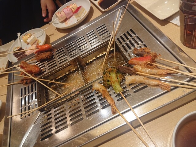 串揚げのお店ですが、業態がちょっと特殊です。 テーブルに油があり、そこに串を突っ込み、自分で揚げるというスタイルなのですね。 串をはじめ、食べ物はビュッフェスタイルになっており... 詳細を見る
