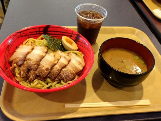 で魚介醤油煮豚つけ麺大盛とアイスウーロン茶を注文して来ました。麺は極太麺でした。煮豚は5枚入っていました。スープは魚介醤...