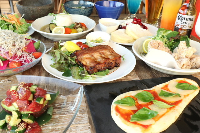 ようこそ“Blue Table”へ!当店はお台場の海と、レインボーブリッジを臨む寛ぎのダイニングバー◎手作りにこだわる料理・ドリンクでおもてなしいたします。皆様にお出しするのは、自家製のカレーやふわふわ食感のパンケーキ。そして、フルーツをふんだんに使ったスムージーなど。それらは、ゆったりとしたソファ席や、目の前が海のテラス席でお楽しみくださいね。ゆったり過ごせる空間で、寛ぎのひと時を◎