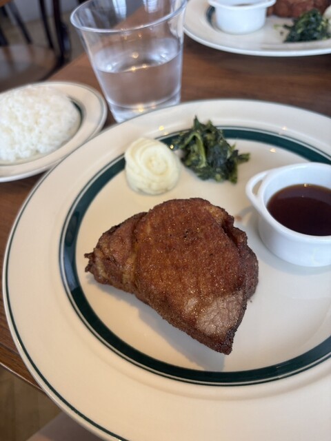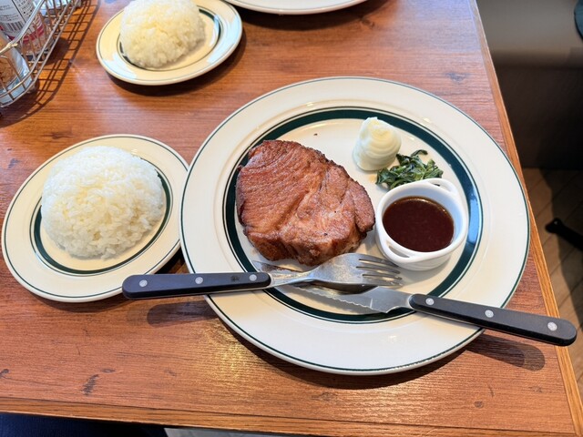 メニューは基本的にポークステーキだけという潔い店です。 一応カレーもありましたが、これにもポークステーキが入っております。 この店の特徴は何と言ってもステーキが山で例えられ... 詳細を見る