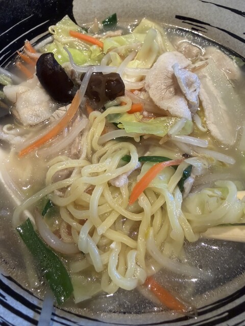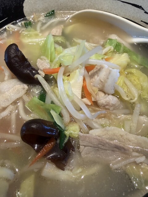 相変わらず繁盛してます。11:40頃の入店で、ほぼ満席。1人席に5分ほど待ったのち案内されました。 今日は塩タンメンをいただきました。野菜たっぷりで優しい味。大振りなキクラゲも嬉... 詳細を見る