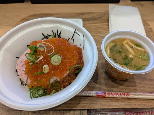 イクラ丼食べて見たくてひさびさのすき家 この店舗は無人レジで注文と決済 番号で配膳、受け取って2階席へ 器は全て使い捨てのタイプ イクラだけだとなんかしょっぱそうなので、イ... 詳細を見る