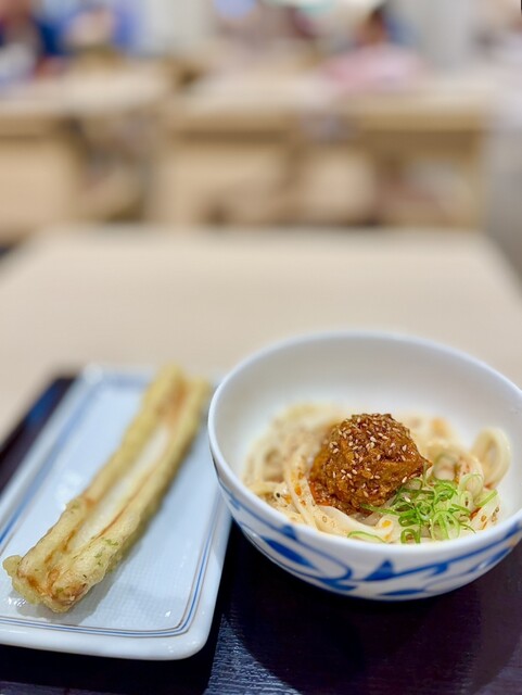 ららぽーと豊洲のフードコートで存在感を放つ「宮武讃岐うどん」。香川県発祥の老舗が手掛ける一杯は、シンプルながら讃岐の本流を感じさせる確かな味わいが魅力だ。まず目を引くのは太めでコシの強い麺。噛んだ瞬間、もちっとした弾力とつるりとしたのど越しが同居し、うどん本来の力強さをしっかり伝えてくれる。出汁はイリコの風味が前面に出た関西寄りの澄んだ味わい。塩気は控えめで、魚介の旨味がじんわり舌に広がり、飽きず...