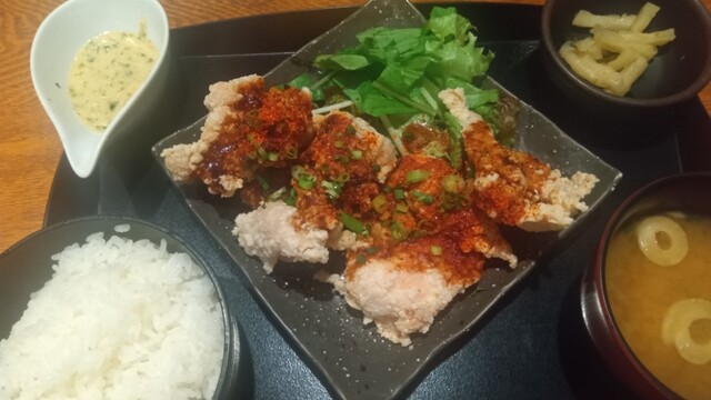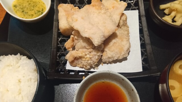 「1949年 東京日本橋で鶏専門の卸として創業、都内に複数店舗を持つ、老舗「やきとり宮川」」の豊洲店。夜呑みにBMしたのは、コロナ禍前で、LIFOの管理で失念してしまい、ランチにリマインド。13時24分に入店致しましたら「お時間2時までですが」は構いません。「こちらかこちらどちらでも」のカウンター席はどちらでも隣席ありで、店頭の唐揚げ4種1400円均一から、通例ならば「胡山椒鶏定食」ですが「宮川名...