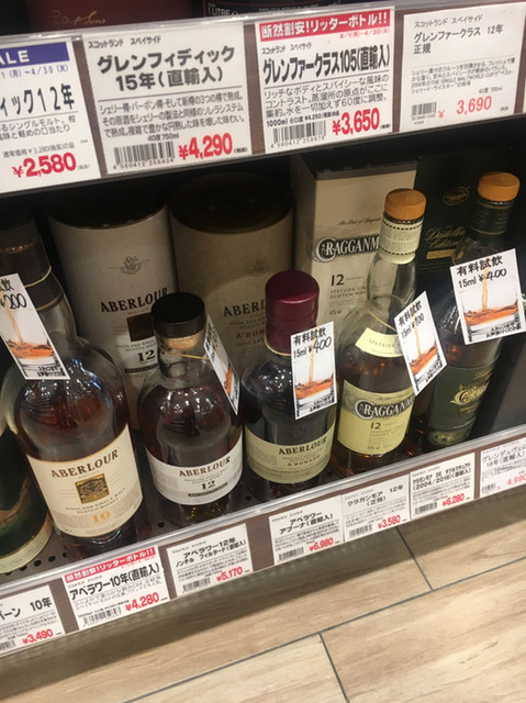 チェーンのリカーショップですが一角でビールやウィスキーが飲めるんです。奥さんとの待ち合わせに軽く一杯やるのに丁度よい空間
