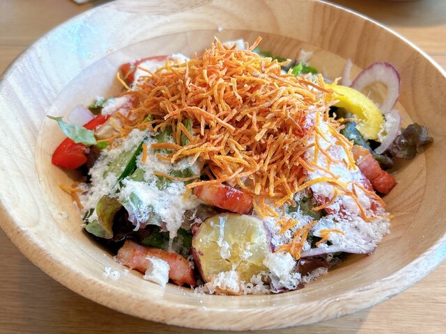 豊洲ららぽーと一階、ガラス張りで外からの光が差し込み明るい。まさにランチに最適! サラダもシェアして食べるのに適したボリュームで、ドレッシングが2種類付いてくるのも嬉しいですね。 メインは、海老のビスクのドリアは、海老の香りがとても良く、熱々でつまみにもなる感じ。 パスタも麺がもちもちで美... 詳細を見る