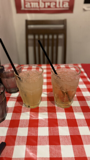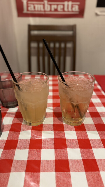 ドリンクは、グラスのスパークリング、白ワインはカラフェで...