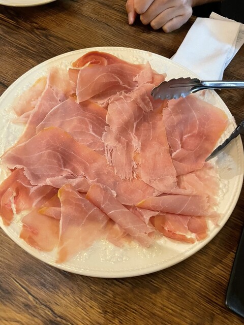 昨夜は、生ハムの盛り合わせ、イワシの南蛮漬け、シラスのブルスケッタ、ムール貝の胡椒蒸し、生ハムたっぷりのマルゲリータをオーダー。