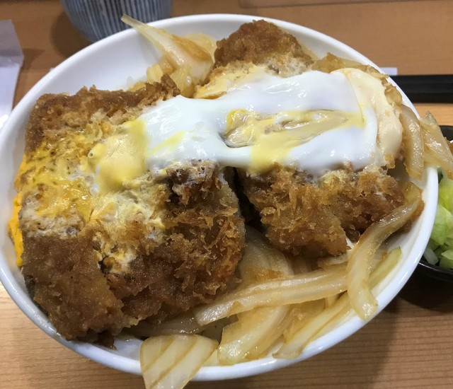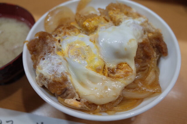 私はロースカツ丼1050円(税込)を注文、 連れは 11:00~14:00のサービスメニュー カツランチ930円(税込)にしました。 豚汁が付いていて、これが熱々!具材たっぷりで美味しい♪ カツ丼にはお新香も付いていました。 カツ丼パッと見 小さく見えたのですが、全然そんなことなく、... 続きを読む»