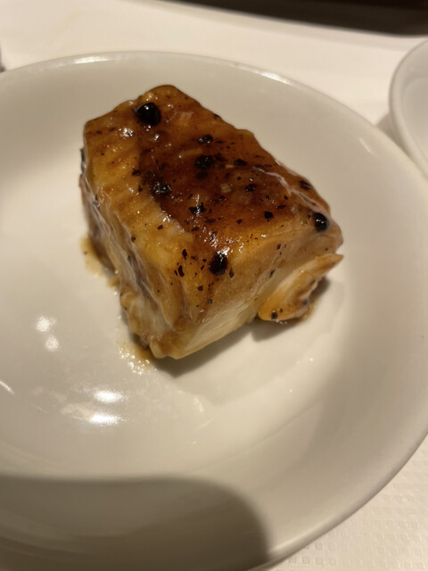 オーダーしたのは車海老の殻なしチリソース、黄韮と鮑の炒め物、フカヒレの姿煮、豆苗炒め...