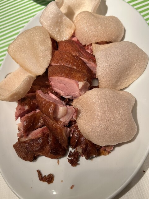 6人の会食で、定番の前菜ピータン豆腐、揚げナスから、鮑のスープ、鶏肉とザーサイ炒めのレタス包み、八宝菜、小籠包たっぷり、チ...