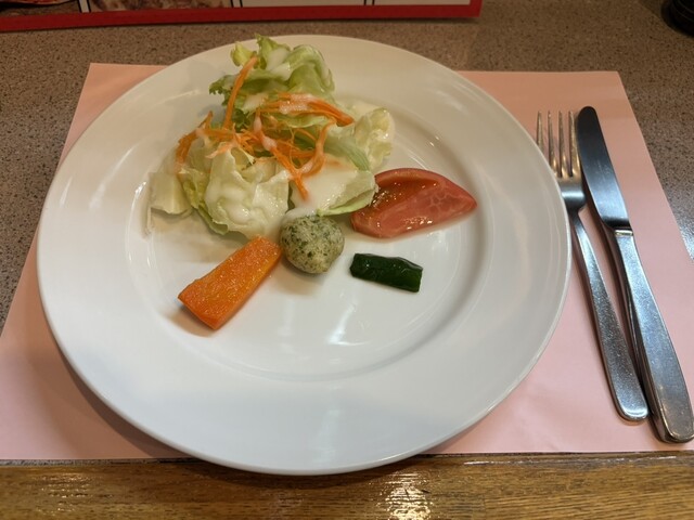ランチで選んだのは「ピッツァセット(ピッコロサイズ)」。まず出てくる前菜のサラダと小皿で気持ちを整えたら、いよいよ主役のピッツァ。直径25cmほどのマルゲリータは「これでピッコロ?」と思うほど...