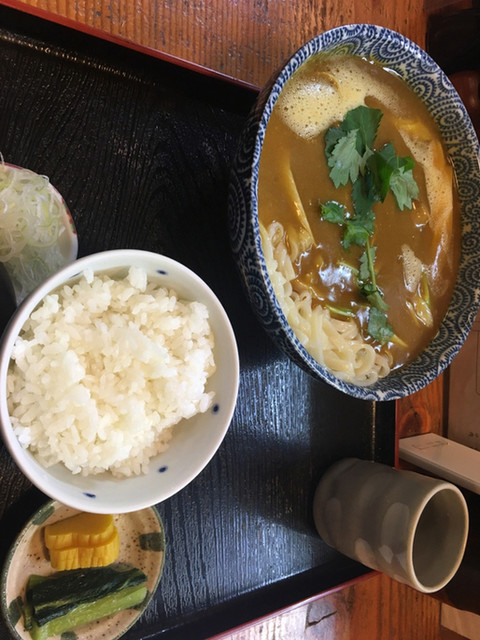 前回年末の訪問時に、気になってしまっていたメニュー、角煮入りカレーうどん、当然ライスセットを頂きに。 大きめ丼にカレー汁なみなみと、チョイと粘度も有り、辛口ですが出汁もしっかり、... 続きを読む»