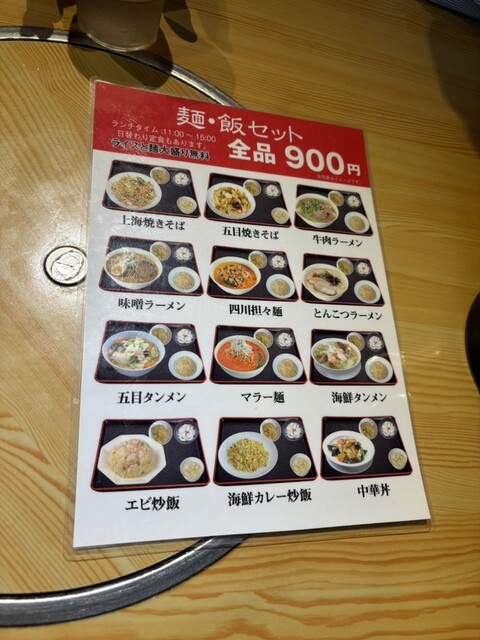 私はランチメニューの五目タンメンセットをオーダーしました。