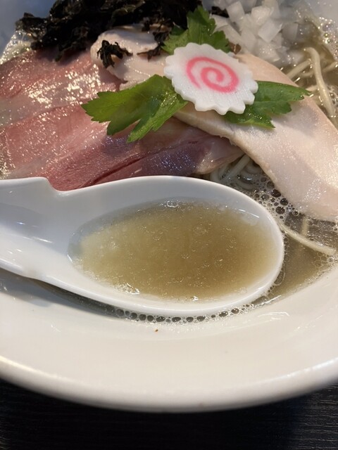 煮干しそば 1,000円 平日11時20分に訪問。 店内は半分ほどの入りでした。 浜松町近くの煮干しの名店に初訪です。 着席後すぐに提供いただいた一杯はクリアなスープに凝縮された煮干しの旨味が大変印象的。 煮干し特有のクセもほとんどありませんでした。 券売機上の掲示では、... 詳細を見る