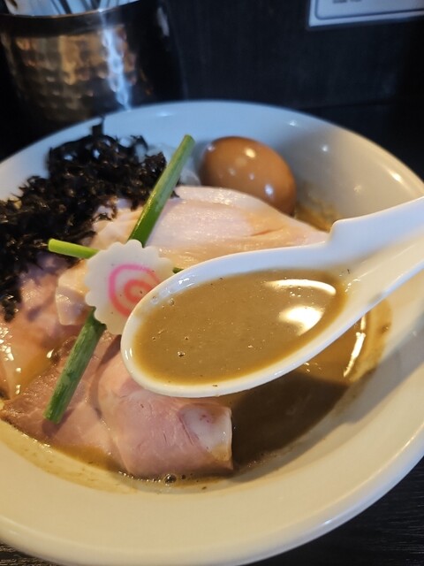 本日は3種類の煮干しから旨みを抽出したした繊細なスープの看板料理"煮干しそば"で "鶏・豚"2種のチャーシューに"玉ねぎ・味玉・海苔"とフルトッピングの"特製煮干しそば" 以前頂いた"濃厚そば"とは違ってサラっとしたスープ "濃厚"と付いていなくても旨みが濃いで...