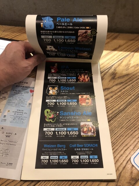 クラフトビールのメニューが豊富です。クラフトビールなので、お値段はそれなりです。