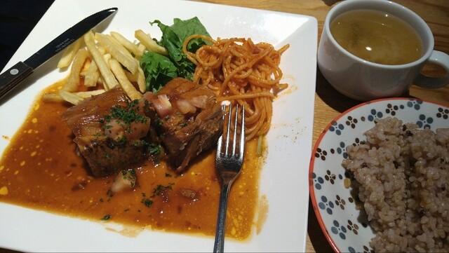 玄米を選べるのが、健康的で嬉しいです。ドリンク、スープやサラダも取り放題で、ドリンクはビネガードリンクをはじめ多くの種類から選べて楽しいです。