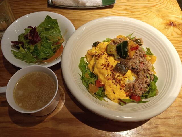 サラダ、スープ、ご飯、ソフトドリンクがブッフ...