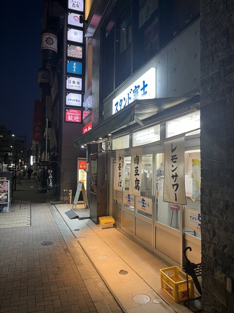 浜松町駅近、煌々と輝く「スタンド富士」の看板 平日の夜10時、一人でふらりと立ち寄る 店内は溢れんばかりの人、人、人! 運良く退店される方と入れ替わりで、奥カウンター... 詳細を見る