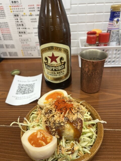 再訪なので星4.0で 前回も土日、今回も土日の飲み放題で訪問です 土日飲み放題 1089x2 今日は気になるメニューを チャーシューエッグ 768 チャーシューは醤油/塩味が強すぎ ジューシーさは無くボソボソしてます 卵の黄身がそれをコーティングするのか? 肉豆腐... 詳細を見る