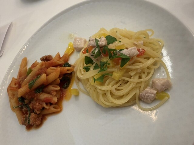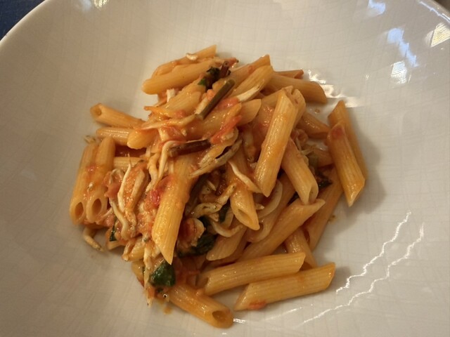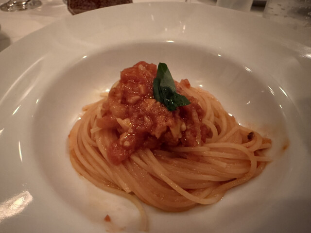 だけど、パスタの鰆とか、豚肉食べてる...
