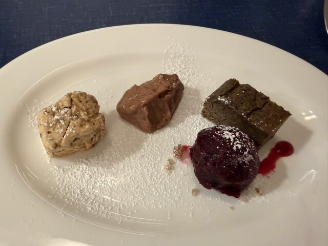 田町駅近くの地下にあるイタリアン。カウンター6席とテーブル数席の小ぢんまりしたお店。ショートコースでも前菜、スープ、デザートがつく。どの料理も旬の食材が使用されておりとても美味しかった。大きなワインセ...