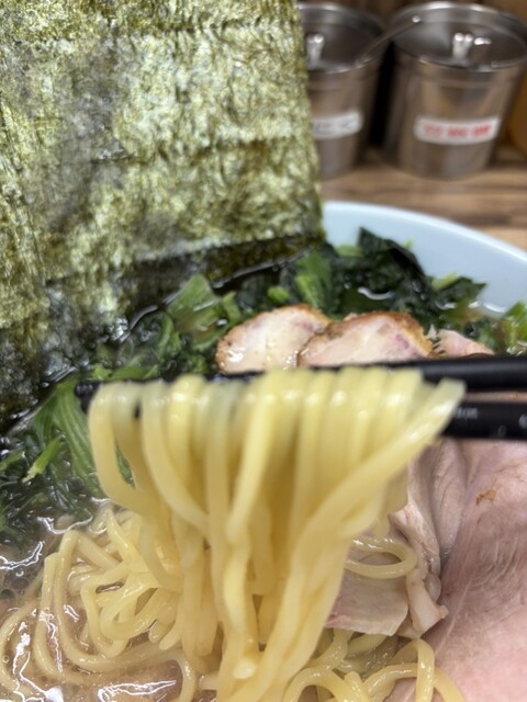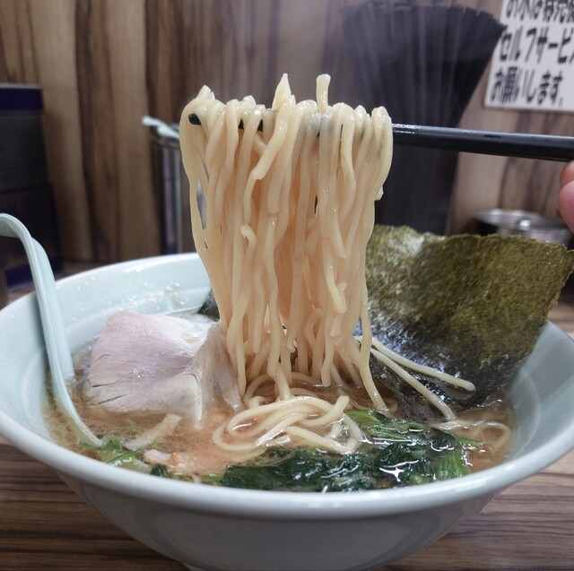 いただいたラーメンは、家系らしいパンチの効いた豚骨醤油スープが絶品。濃厚ながらも嫌な重さがなく、モチモチの中太麺にしっかり絡みます。