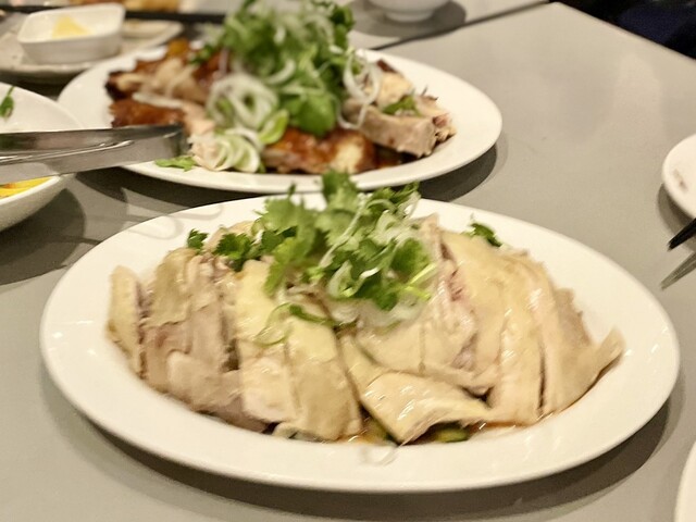 そのへんのホーカーだと一人前3ドル(当時のレートで240円ほど)で食べていたチキンライスですが、こちらのお店だと4〜5人用ビッグサイズのチキンが税込4,500円!