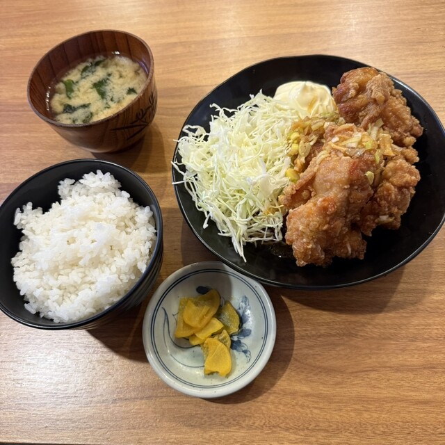 ランチは生姜焼き定食、唐揚げ定食、焼餃子定食な定番のおかずが揃う中、やや意外性のある肉焼売とエビカツ定食(1000円)にしました。
