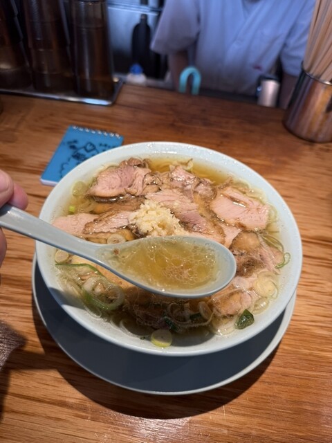 スープは鶏ガラをベースにした澄んだ清湯で、醤油の香ばしい風...