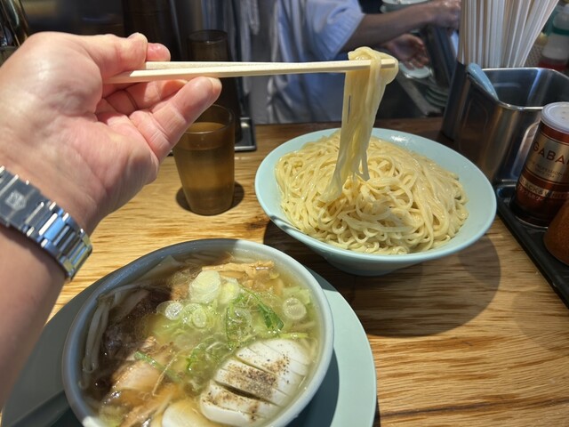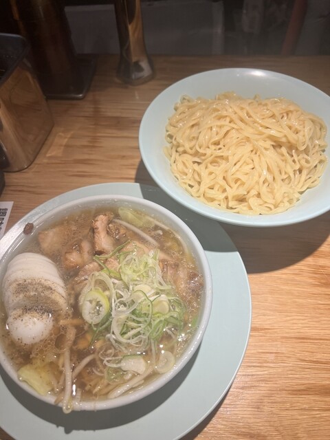 田町駅すぐの人気店で、つけ麺(もり中華)のチャーシュー入りを注文。豪快に盛られた厚切りチャーシューは驚くほど柔らかく、肉の旨味が濃厚で主役級の存在感。つけ汁は醤油のキレとコクがありながら後味は重すぎず...