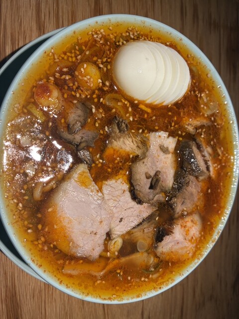 再び訪問。今回は辛味にトライしてみました。辛さは5段階まであるとのことで、無難なところで3を注文したものの、いざ食べてみると、けっこう辛い。少しむせてしまいました。でも、麺、スープ、チャーシュー、全て...