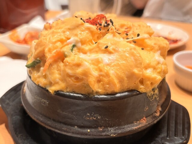 圧巻のチーズタッカルビ。ランチタイムで注文は2人前から。圧倒的な旨味の向こう側から辛味がちゃんと来るが、痛くない辛さ。むしろ、めちゃくちゃ美味い。 締めのご飯は、店員さんが焼き上... 詳細を見る