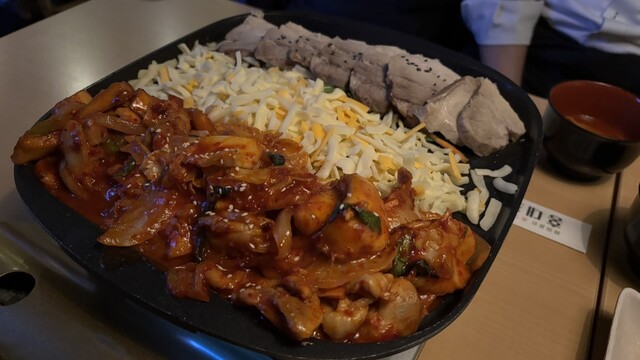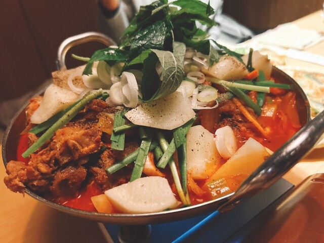 トッポキは結構辛かったですがコクがあって濃厚で美味しかったです。また、サムギョプサル&チーズタッカルビは2人前からということで2人前を頼みましたが4人でも十分お腹いっぱいになれるボリューム。サムギョプサルは少しパサパサしてましたが、タッカルビはチーズと絡めるとピリ辛マイルドで美味でした。ヤンニョムチキンも...
