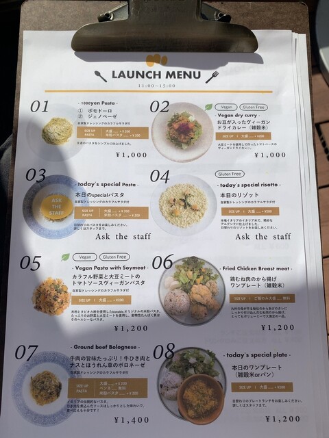 ヘルシー志向なイタリアンがメインでいくつかビーガン料理も用意されています。