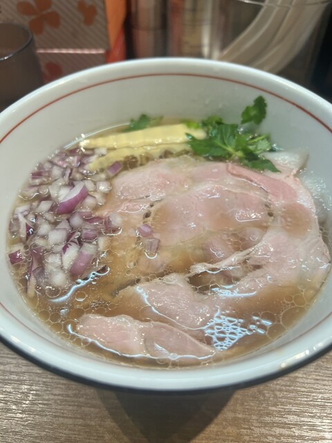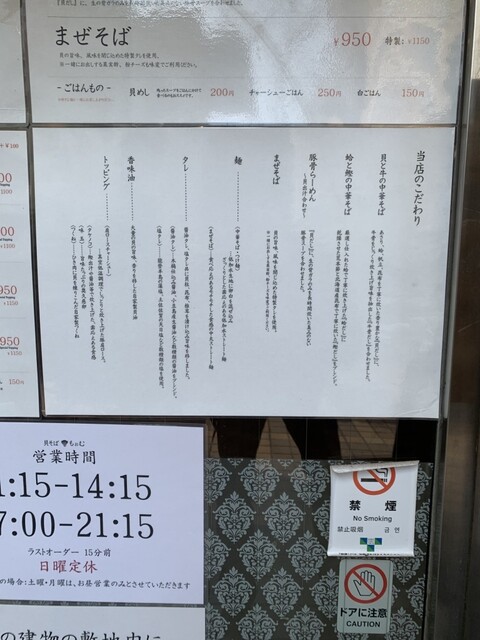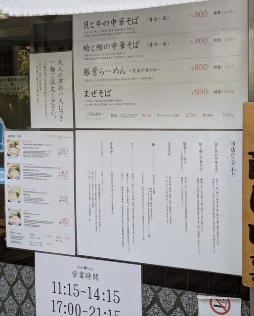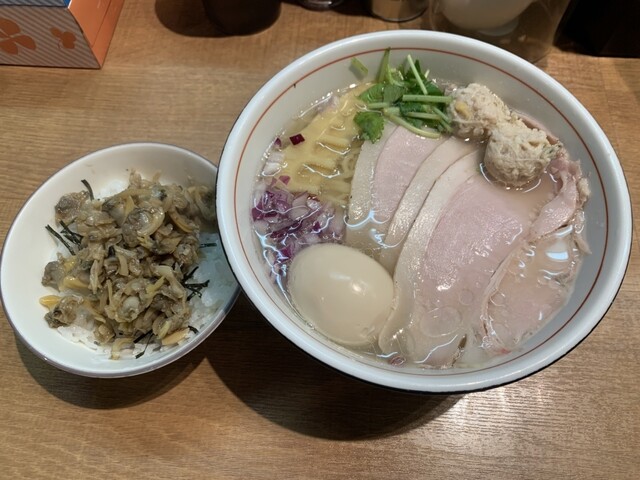 貝の旨味が凝縮された「貝そば もぉむ」でランチ利用。スープは濃厚ながらクドさがなく、貝出汁の豊かな風味が一口目から感じられます。中太ストレート麺との絡みも抜群で、最後まで飽きずに楽しめました。トッピン...