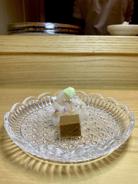 手前にある枝豆の煮凝りのお醤油をつけていただくと、新しい美味しさ✨