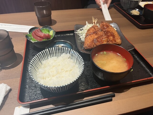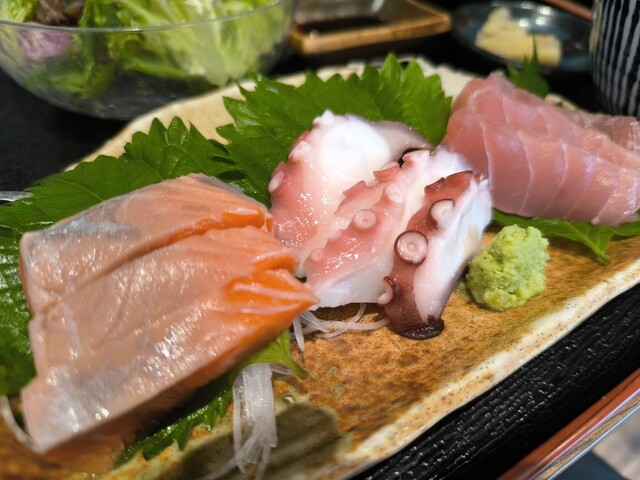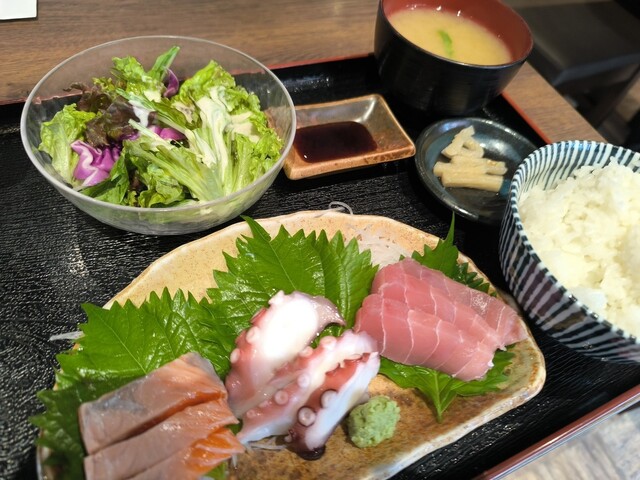 唐揚げ定食か、チキン南蛮か迷いましたが、刺身定食の気分だ...