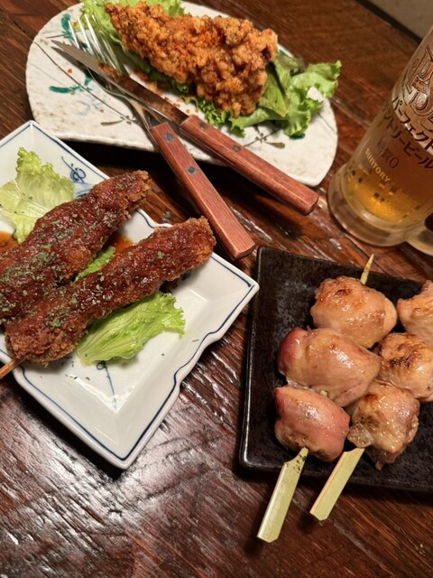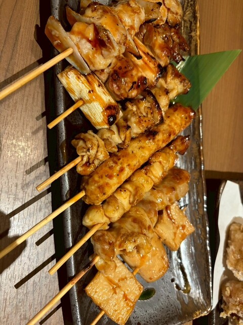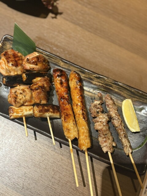 カマンベールフライやつくね、焼き鳥、せせり、肉巻きおにぎりのチーズ...