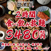 【2H食飲】 野菜巻き串・炭火焼鳥・博多餃子・地鶏・前菜・揚物・〆物 ...etc!3480円52品