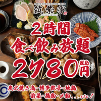 お得に大満足!自慢の炭火焼き鳥・4種類の博多餃子・前菜・サラダ・揚物・〆物・デザートまで34品のお料理が食べ放題!さらに嬉しい2H飲み放題付でお腹も心も満たされる!宴会・女子会・合コンにもピッタリです!
