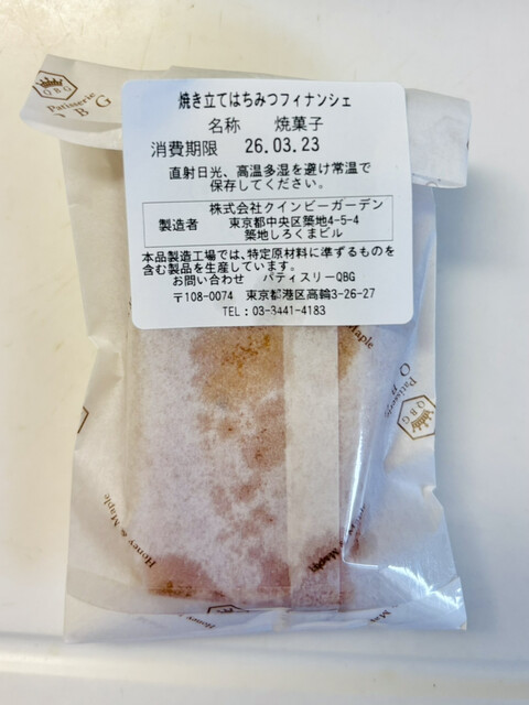 2026年2月、平日夕方にエキュート品川の「パティスリーQBG」へ。はちみつ・メープル専門メーカー直営らしく、ケーキというより焼き菓子が主役の顔つきで、甘さの作り方に芯がある印象です。人でごった返す品川駅なのに、並ばず買えてちょっとした勝利。自宅用の買い足しにちょうど良かったです。