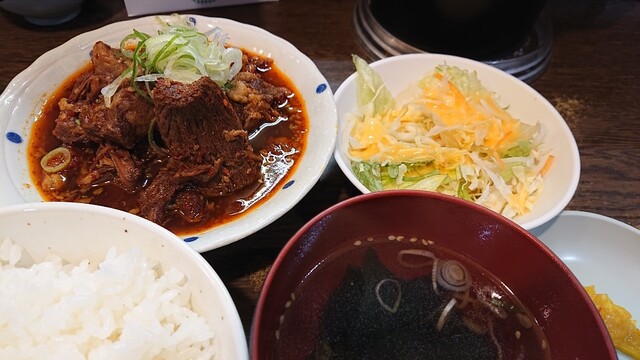 週末のお昼に。 ここ、相棒から美味しいと聞いてて、来たかったんですよね〜。 11時ジャストに到着。 本当に路地裏ですね。 準備中の札が出ておりましたが、2〜3分待っていたら開店しました。 注文はもちろん、お目当ての激辛牛スジ煮込み定食。 あと瓶ビール。 定食あっという間に出... 続きを読む»