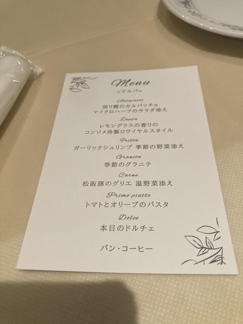 | サービス | お祝い・サプライズ可(バースデープレート)、ドリンク持込可、ソムリエがいる |