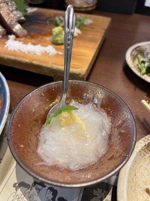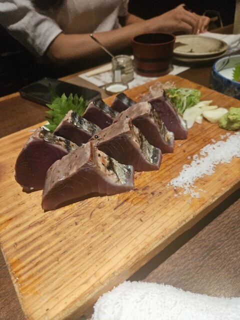 かつをのたたきと本日の煮込み定食をオーダーしました、1100円です(2025年3月現在) この日の煮込みは、牛すじ煮込みでした 定食にはメイン以外にご飯、お新香、味噌汁付きです かつをの塩たたきは、本場の高知で食べたことがありますが、本場を超えていると思いました! ぶ厚い切り身、周りは藁焼き... 詳細を見る