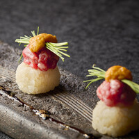 ◆全て個別盛り提供◆【8000円プラン】うにく手毬寿司×佐賀牛サーロイン紙しゃぶしゃぶ鍋×佐賀牛イチボ・サーロイン食べ比べ溶岩焼×佐賀牛ランプレアカツを楽しめるコース 料理のみ 全9品 ≪紫陽花≫9品