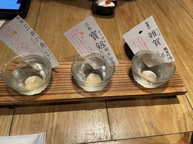 お酒がちょい飲みサイズから選べるのがとてもよいと思います。日本酒に詳しくない人はお試ししながら飲めるのでおすすめです。金曜夜20時に伺いましたが、料理は完売のメニューが多く目立ち頼みたいものが頼めず残...