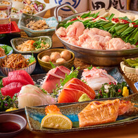 【ネット予約で個室でご案内確約】国産牛もつ鍋の付いた寒い時期の会社宴会にぴったり。当店自慢の季節鮮魚の五点盛りと縞ホッケなど充実の内容をお楽しみいただけます。