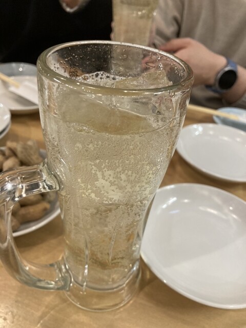 蛇口からハイボール飲み放題60分550円は最強。お通しの茹でピーナッツもうまい。つまみよりも呑みに走りあまり頼まなかったけど、餃子もポテサラもちゃんと美味しい。